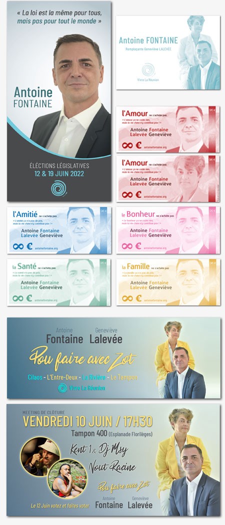 projet : Création de supports de communication pour la campagne législative 2022 du candidat Antoine Fontaine (Vivre La Réunion).